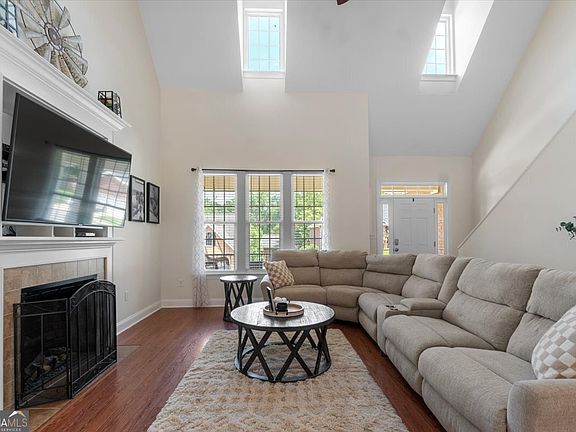 Step inside this beautifully maintained home in the desirable Huntington Shoals neighborhood and you'll immediately feel at home! You're welcomed by a soaring two-story living room filled with natural light, centered around a cozy fireplace-perfect for relaxing or gathering with guests. The open-concept dining area flows into a well appointed kitchen featuring granite countertops, stainless appliances, and ample cabinet space. Just off the main living area, the spacious primary suite offers comfort and privacy with an ensuite bath that includes dual vanities, an expanded shower, and a generous walk-in closet. Upstairs, you'll find three additional well-sized bedrooms and a full bath-ideal for family, guests, or home office needs. Step outside to an expansive back deck, perfect for hosting and entertaining, which overlooks a beautifully landscaped backyard, complete with a fire pit and natural stone accents. The yard backs up to a wooded buffer, offering privacy and a peaceful setting year-round. Located just minutes from the Loop, Hwy 316, shopping, dining, and schools, this move-in ready home blends comfort, charm, and convenience. Don't miss the opportunity to make it yours!