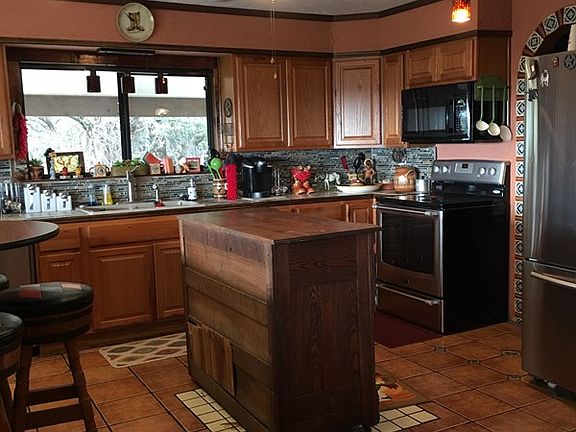 Vista Views from this Two Level Hillside Stucco Lodge on 4 Acres. Your choice of a 4/3 or 3/3 w/open Guest-quarters downstairs. Home renovated in 2015 with Texas Style Touches throughout, Hand sanded/refurbished Original Woods, Tile compliments the new Kitchen Cabinets, Coordinated Colors w/New Bath Tile Designs. There is an Original Artists Mural to accent ambiance with the southwest Style.
