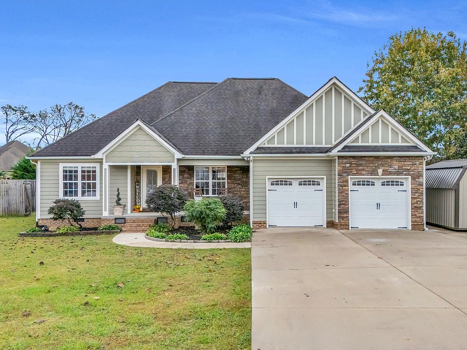 Welcome to your dream home in the highly sought-after Julie Lynn Subdivision of Jasper, Tennessee! This gorgeous Craftsman-style home boasts stunning curb appeal with its beautiful stack stone and board-and-batten siding—you'll be captivated the moment you arrive. Located on a quiet, family-friendly cul-de-sac, this home offers peace and privacy while being just minutes from everything you need. Inside, the open floor plan is a true showstopper, featuring elegant hardwood floors, coffered ceilings, and double crown molding throughout. Wayne's coating in the formal dining area adds a touch of sophistication, perfect for hosting dinner parties or enjoying family meals. The chef's kitchen is a dream! With antique white cabinets, granite countertops, and stainless steel appliances, it's not only functional but beautifully designed. A large pantry offers plenty of storage space, and the cozy breakfast nook provides a sunny spot to start your day. Plus, a separate laundry room keeps everything organized and out of sight. The primary suite is a true retreat, with a luxurious double tray ceiling and a spa-inspired bath. Enjoy double bowl vanities, a large walk-in shower, and a separate soaking tub. The mega walk-in closet provides more than enough space for all your wardrobe needs, and the hidden potty room offers an added layer of privacy and convenience. Step outside and enjoy the L-shaped swimming pool, perfect for hot summer days, surrounded by a private fence. The outbuilding offers plenty of room for storage, a workshop, or whatever your heart desires.