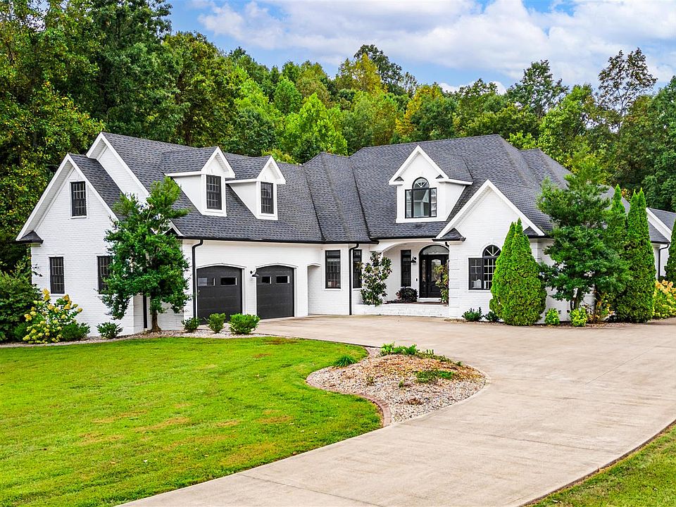 Your Dream Home Awaits in Stonewall Subdivision! From the moment you turn into the driveway, this home will stop you in your tracks. The crisp white painted brick with bold black accents, beautifully manicured landscaping, and inviting covered front porch say one thing loud and clear: “welcome home!” Step into the grand foyer and be captivated by the spacious living room, complete with a cozy gas fireplace, elegant tray ceiling, and a wall of windows that frame breathtaking views of the private, wooded lot. This space flows seamlessly into the gourmet kitchen, featuring stainless steel appliances, an oversized island, granite countertops, and a charming breakfast nook—perfect for casual dining. The main level boasts gorgeous updated flooring throughout, a formal dining room with wainscoting for elegant entertaining, and a spacious office. The large primary suite is truly a retreat, with a tray ceiling, private doors leading to the pool, a spa-like bath with dual vanities, a Jacuzzi tub, a tile shower, and a generous walk-in closet. Two additional bedrooms, a full bath, a guest half bath, and a laundry room with built-in cabinetry and sink complete the main floor making it as practical as it is stunning. Head upstairs and you’ll find not one, but TWO huge bonus rooms. Playroom, home theater, gym — you name it, there’s space for it. Plus, there’s a convenient half bath and tons of walk-in attic storage. Outside is where this property truly shines. Situated on nearly 3.5 acres, the backyard oasis features a sparkling in-ground pool, a pool house with a convenient bathroom, a fenced yard for kids and pets, and a covered back patio for year-round enjoyment. This home is loaded with updates including a newer roof, HVAC, pool liner, paint, gutters, and garage doors. The home has small features everywhere you look that make the space feel very custom such as curved wall corners, beautiful crown molding, and soaring 9-foot ceilings on the main level—offering both elegance and comfort at every turn. This isn’t just a house — it’s where your best memories are waiting to be made.