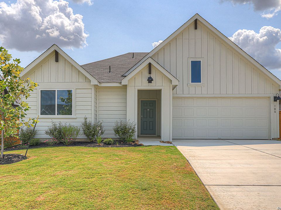 MOVE IN READY! COMMUNITY LOCATED NEXT TO I-35. The Ashburn is one of our one-story floorplans featured at our Trace community in San Marcos, Texas. This home is perfect for smaller families or homeowners looking to downsize. Featuring 3 bedrooms and 2 bathrooms, this home also includes a 2-car garage all within 1,253 square feet of living space. Our homes in Trace feature farmhouse exteriors. When you enter the home from the covered front porch, you will find a short hallway that leads to the secondary be