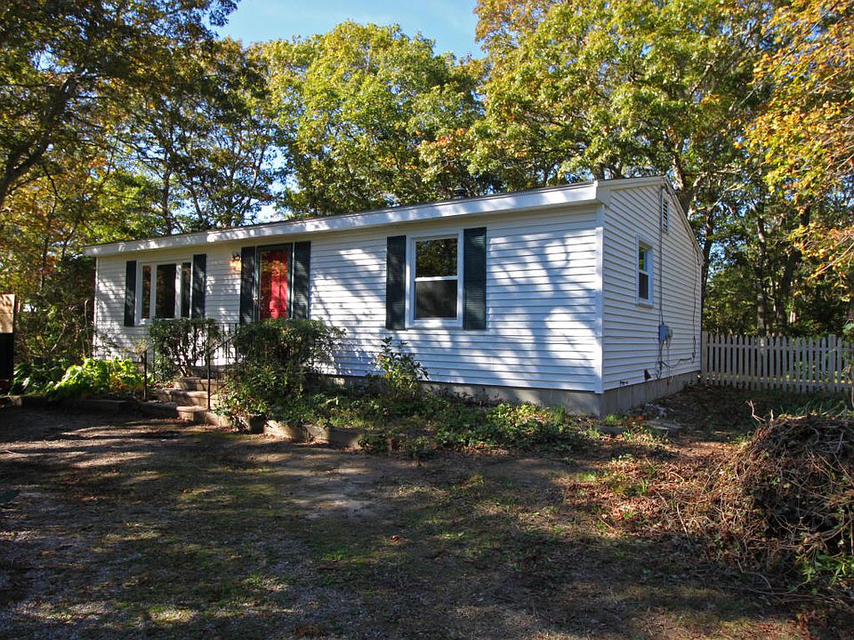 Renovated ranch sited on quiet corner lot in Marstons Mills. work almost completed! A great starter home or vacation getaway with one floor living and open floor plan. New flooring, new kitchen cabinets, and freshened up bath, you can move right into this 2 BR home with private back yard. Windows replaced about 3 years ago.Garden shed, circular driveway. Oil heat (older furnace-serviced regularly)new oil tank-natural gas on street (may not be to property). Passing Title V, town water plus well for irrigation/exterior watering. Easy care vinyl exterior.Walk to nearby Lovells Pond and conservation areas on Mashpee Cotuit line.Beaches, golf and water sports beckon In Cotuit, Marstons Mills or any Barnstable village water using your beach sticker! Buyers to verify measurements and details.