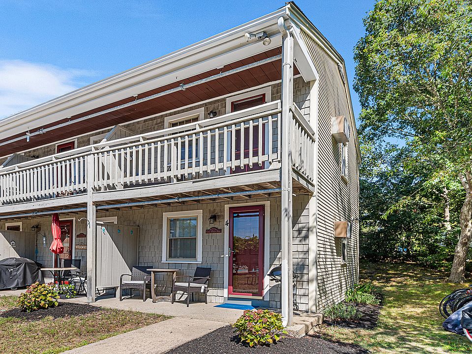 This well-maintained end unit offers easy access to town amenities, including beach permits and access to golf memberships--without the upkeep of a single-family home. available mid-April to end of October. Features include 1 bedroom, 2 full baths, hardwood floors, a spiral staircase, and a bright, open living space. Improvements include recessed lighting, privacy blinds, newer windows, and two A/C units. Enjoy a private balcony for sunsets, a patio with grill space, and views of a natural turtle habitat. Includes two deeded parking spots, fresh exterior paint, and a new privacy fence. HOA covers electricity, water, trash, and lawn care. Pet- and rental-friendly complex with free laundry and a pool.