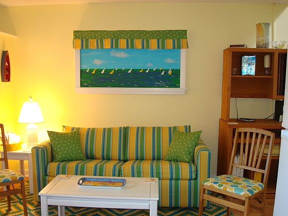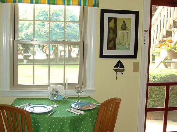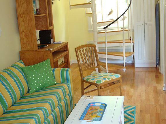1BR / 2Ba 532 sq ft 2 story fully furnished condo off-street assigned parking Vacation home or investment for summer rental. Open April through November This condo is one mile from West Dennis Beach. It is across the street from Bass River, a marina, Sundancers restaurant and the Summer Shanty restaurant. Before you enter this pristine, mid-cape, romantic get away for 2, there is a private patio with a table and 2 chairs for morning coffee or an evening glass of wine. Once you enter, there is a warm, colorful, living, dining, kitchen area welcoming you. The updated kitchen is furnished with microwave, coffee maker, toaster oven, 2 burner stove, pots and pans, crock pot, dishes, glasses, flatware and more. There is a 32 inch flat screen TV mounted up and away in the kitchen. Beyond that is a first floor 3 piece bathroom with shower. Climb the spiral staircase to the second floor. There, you'll find a spacious queen sized bedroom with plenty of storage and another 32 inch flat screen TV mounted up and away. There is also a second 3 piece bathroom with shower. Outside the bedroom is a balcony with 2 bistro chairs and table overlooking the lawn and pool area. Bed linens and towels are included. Call Sheila at 508-398-6286