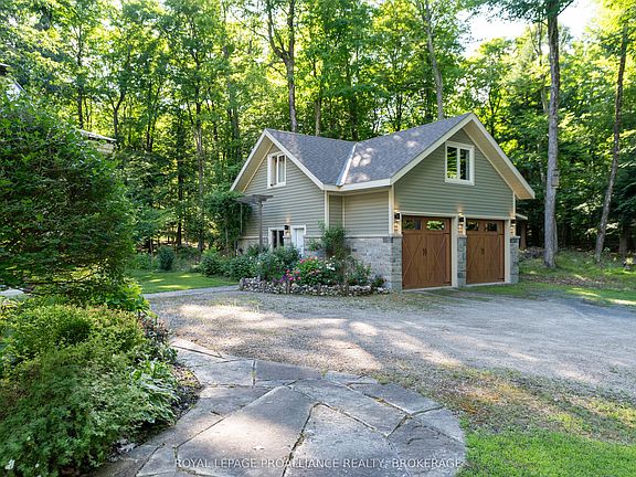 Stunning custom-built home in a serene and private setting in Otty Woods Waterfront Community. This beautifully crafted home is impressive everywhere you look and has been meticulously designed and maintained. When entering the home, the workmanship, floor plan and décor make an immediate impression. The large foyer welcomes you to the home and opens up into a large open-concept kitchen with stone countertops and spacious dining area with access to the rear deck. The main level continues with a cozy living room, a master bedroom with an ensuite (currently being used as a sitting room) and two further bedrooms and another full bathroom down the hall. The lower level is set up with two further bedrooms, a 3-pc bathroom and a large recreation room with an amazing stone fireplace and a cold room. This level has access to a unique and peaceful screened-in room that is the perfect place to relax and unwind and enjoy the picturesque views of the forest behind the house. The property has a detached garage with a large finished loft that is currently being used as a studio. Attached to the garage is another section that houses a wood boiler that ensures solid heating throughout the winter months. The house is also heated by a propane furnace for an easy heating option. The house is serviced by a drilled well and septic system and the grounds are beautifully landscaped with perennial gardens, mature trees, pathways through the woods and more. This property has access to Otty Lake via a community waterfront property with a dock, swim raft, a gazebo with picnic tables and chairs, an area to store kayaks, canoes, etc as well as walking trails. Prime location just south of Perth and Smiths Falls. Absolutely everything about this property is exceptional the home, landscaping and location! Must be seen to be appreciated!