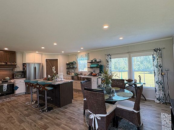 This beautifully crafted 4-bedroom/2-bath family home is situated on 6.39 acres. Home features a spacious living room with an electric fireplace and a large modern kitchen with a walk in pantry and island. The split bedroom floor plan offers privacy for the master suite that includes a soaking tub, large tile shower, double sink vanities, and a spacious walk-in closet. This property offers space, privacy and acreage. Call to schedule your showing today!