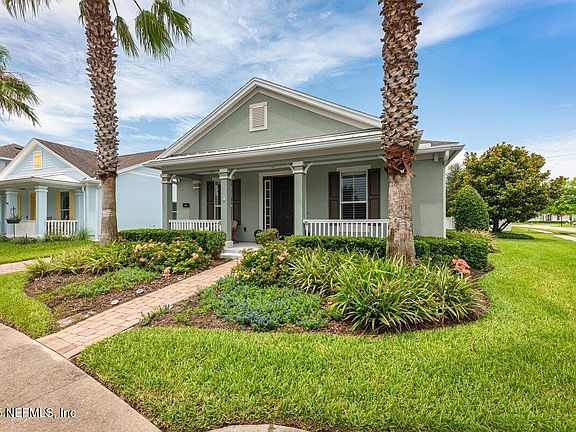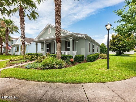 Step into classic Old Florida charm with this beautifully maintained Key West-style home offering 2,130 sq ft of thoughtfully designed living space. Featuring 3 bedrooms and 2 bathrooms, a perfect fusion of breezy coastal style all the comforts of modern design. The gourmet kitchen, equipped with stainless steel appliances, double ovens, and a natural gas cooktop, opens to a bright and airy living area—perfect for entertaining or relaxing. A separate formal dining room can easily be converted into a home office or 4th bedroom, and a cozy den provides additional space for relaxation. Elegant hardwood flooring runs throughout the main living areas and bedrooms (excluding the second guest room), and a triple glass sliding door leads to a spacious screened lanai creating a seamless connection between indoor and outdoor living. Situated on a desirable corner lot, this property features a charming front porch, a long paver driveway with ample parking and attractive landscaping. New AC 2025 Nestled in a prime spot within Lakeside, this home is just a short walk or golf cart ride to the lake and Nocatee Town Center offering unbeatable access to shopping, dining, and local conveniences. Enjoy the full Nocatee lifestyle with highly rated schools and an impressive lineup of amenities, including splash and spray water parks, pools, lazy river, playgrounds, a kayak launch, YMCA, fitness center, and courts for pickleball, tennis, and soccer. From dog parks to scenic trails, there's something for everyone. The community buzzes with year-round events like concerts, food truck Fridays, fireworks, and farmers markets and a brand-new library is coming soon. The area also boasts excellent healthcare facilities and endless opportunities for outdoor recreation, from boating and golfing to hiking and biking- plus, the beach at Mickler's Landing is just 6.5 miles away!