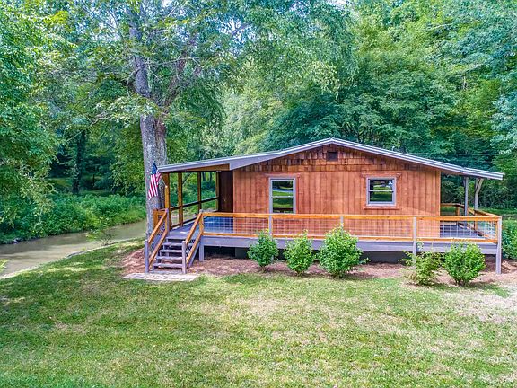 Hemptown Creek Home has incredible frontage is just a few miles from Downtown Blueridge. Freshly updated, This home offers 2 Bedroom 2 Bath with new appliances, electric cooktop, stove, refrigerator, microwave, and Countertop. New flooring! Engineered hardwood in the kitchen and living room and carpet in both bedrooms. Tin roof in Bedrooms gives a designer feel to the home. The Master has a new addition of a bathroom and Laundry closet with an outstanding long-range view of the creek outside the window. Sit on the front porch and feel the cool breeze as it lifts off the Naturally flowing Hemptown Creek.
