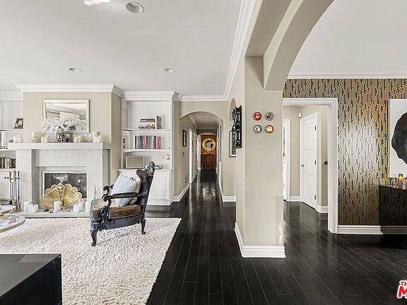 This stunning home offers charm and sophistication, both inside and out. Featuring a private backyard oasis with a pool, spa, and home theatre, it combines luxury and modern comfort. Thoughtfully remodeled with high-end finishes and beautiful hardwood floors, it blends elegance with style.Step inside to discover a cozy living room, complete with a tastefully updated gas fireplace and custom built-in shelving, along with a stylish dining room. On the main level, there is a comfortable queen bedroom with an en-suite Jack-and-Jill bathroom, along with a powder room. The oversized gourmet kitchen is a chef's dream, featuring a large center island, a breakfast bar, granite countertops and backsplash, custom cabinetry and lighting, a wine fridge, island sink, double ovens, and a spacious pantry.From the kitchen is the expansive double family room features two sets of French doors that open to a private backyard, offering landscaping and complete privacy. The outdoor oasis includes a covered patio and a fantastic pool and spa, perfect for indoor-outdoor entertaining. The double garage has been fully converted into a sophisticated home theatre, complete with reclining leather seating, a bar, refrigerator, and wine cooler.Upstairs, the spacious master suite offers a large en-suite bathroom with a separate tub and shower, double vanity, two walk-in closets, and double French doors leading to a large deck with park views. The third bedroom also features its own en-suite bathroom.Ideally located, this home is just minutes from The Grove's shopping, dining, and movie theatre, as well as the boutiques and restaurants of Beverly Boulevard.