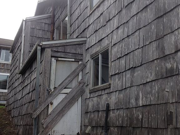 Oceanfront land with structures and fantastic view! Once a popular seasonal lodge known as the Idle Nook. Beachfront unit is a duplex converted to a single and still a rental, which could be buyer's home during reconstruction project. Otherwise, property is in need of extensive renovation, yet such an interesting project for the right buyer! Two massive cedar beams support the rear 2-story building offering basement use options.