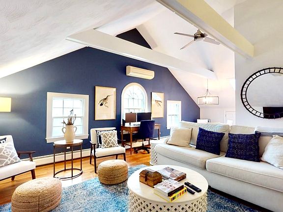 Perennial Military favorite. Welcome to Quatrefoil! Situated amongst the mansions on Narragansett Avenue, just steps to Newport's famous Cliff Walk, we find this beautifully furnished recently renovated Victorian condo. Its park-like grounds provide the perfect setting for a quintessential Newport lifestyle. Whether you are seeking a pied-a-tier, an escape from the city, or a lovely spot to call home, this condo is sure to please. This bright and spacious unit offers an open floor plan, hardwood floors, vaulted ceilings with exposed beams, skylights, modern granite and stainless kitchen, modern bath, gorgeous furnishings, elegant decor, plenty of closet space, ductless AC, dishwasher, microwave, wine cooler, designated washer/dryer and plenty of off-street parking. All this in a super convenient location off Bellevue directly on the Newport Bus line. Just minutes to downtown, Ocean Drive, and the beaches. Sorry, no pets and no smoking allowed. Available January till June . Possible earlier or later move in available. Includes water and WiFi. Call for details.