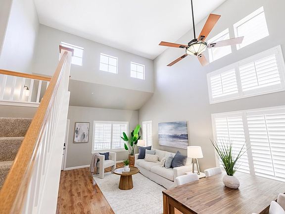 Beautiful Skypark home that backs up to the walking trail, you won't believe the Sunset Views! Popular 4 bedroom floorplan with all bedrooms on the same level and separate family and living rooms. You will love the Sky-high ceilings and numerous windows that give the living room and formal dining area so much natural light. Enjoy the warmth of the family room with its gas-burning fireplace and backyard views. The kitchen is elegant with corian countertops and plenty of lovely wood cabinets. The primary bedroom suite is just GORGEOUS with lovely forest views as far as you can see. Full En Suite with beautiful quartz countertop and double sinks, plus huge walk-in closet. Three spacious guest bedrooms, a full bathroom, and laundry are all upstairs. Spacious rear yard features built-in BBQ, hot-tub and there is also an $80,000 solar and battery pack system with EV charger. Walk to Skypark and enjoy festivals, Food Truck events, sporting activities, bocci ball, pickle ball, tennis, skate park, dog park and more! Walk to dining, shopping or ride your bike to Henry Cowell for some EPIC trails! Award winning Scotts Valley schools, the safest city in the county. I mean... This home truly shines and also features some incredible neighbors. YOU ARE WINNING!!!