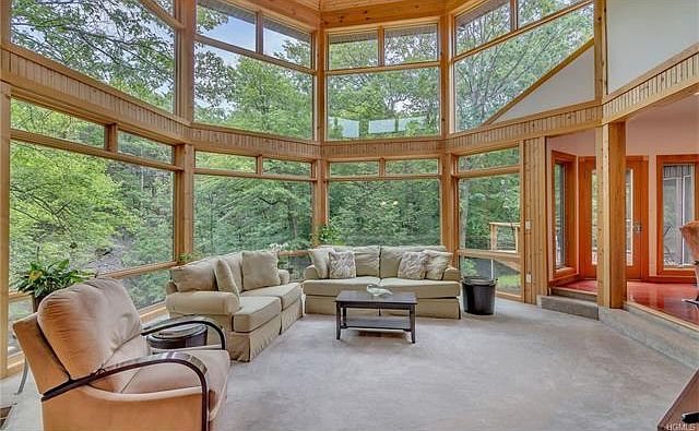 If youve ever dreamed of living in a tree house...now is your chance! Custom built and designed to give you the perfect combination of a peaceful, natural setting with privacy but not seclusion. Gleaming cherry hardwood floors can be found through a majority of the first floor. The kitchen features maple cabinets, Corian countertop on the island and a walk in pantry. The two story sunken family room offers floor to ceiling windows that over look the woods and intermittent pond surrounded by large boulders. The master suite is located on the first floor with vaulted ceiling, walk in closet with California closet system and a screened in porch. The master bath features dual sinks and a whirlpool tub. An office, half bath and laundry room with built in ironing board complete the first floor. The second floor has two generous size bedrooms and a full bath with Corian countertops. There are decks off the first floor with cable railings for an unobstructed view of the beautiful landscape.