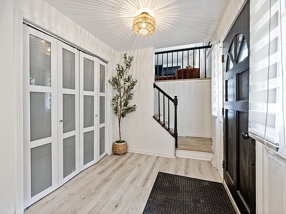 Located in the sought-after Mount Carmel section of Hamden, this split-level home offers 4 bedrooms, 1.5 baths, and an attached garage. The main level features a spacious family room with sliding doors to the deck and private wooded yard, along with a half bath and laundry area. The upper level offers an open living and dining area, plus a kitchen highlighted by a full wall of floor-to-ceiling pantry cabinetry. This level also includes four comfortable bedrooms and a thoughtfully renovated full bath (2023). Other notable updates: vinyl siding (2023), new flooring throughout (2023), new electric panel (2024). Set on a quiet dead-end street, this property provides both privacy and convenience, just minutes from Quinnipiac University, shopping, restaurants, and major highways.