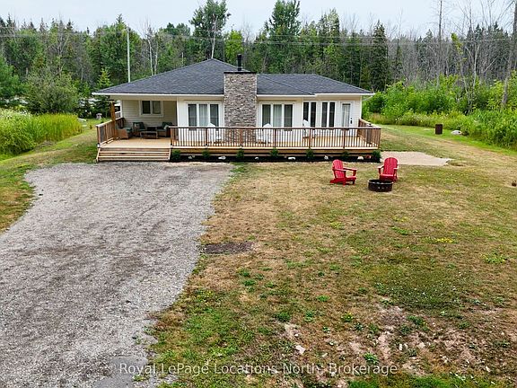 Beautifully crafted BUNGALOW, located just a short drive from Lora Bay, Thornbury, and Meaford, offering the perfect blend of modern efficiency and comfortable main-floor living. Ideal for those who appreciate convenience and style, this home features an open-concept design with spacious living areas and plenty of room to personalize. The layout includes 3+1 generously sized bedrooms, some of the bedrooms can be easily be transformed into a home office, den or library. The primary bedroom is filled with natural light, offering direct access to the front deck, where you can relax and enjoy peaceful views of the hardwood forest across the street. This bedroom can also be converted into another livingroom. The kitchen stands out with a stylish backsplash, hardware, cabinetry and stainless steel appliances. The bathroom features high-end fixtures, including a tile shower/tub combination, offering both functionality and style. The open-concept living and dining area is perfect for entertaining, with a cozy propane fireplace that adds warmth and ambiance on cool evenings. A covered front porch with southern exposure provides a charming spot to enjoy the outdoors, no matter the season. Situated on nearly half an acre, this property is waiting for your personal landscaping design, the property provides ample space for outdoor living and there's plenty of parking with room to build a garage if desired. For those who enjoy outdoor recreation, this property is ideally located close to beach access, as well as world-class golf courses and skiing. Whether you're relaxing at home or exploring the surrounding area, this home is the perfect place to enjoy the best of both comfort and adventure. Book your showing today!