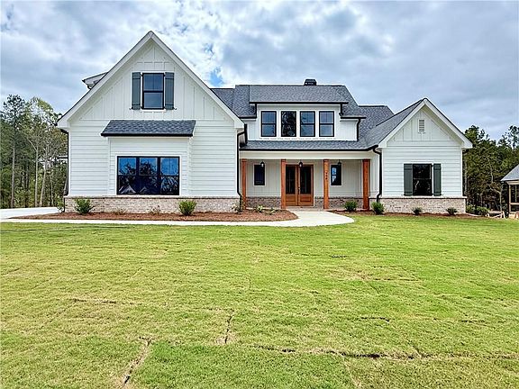 Discover refined living in The Summit, an exclusive gated community in Rydal, Georgia. This new construction luxury home offers five bedrooms, four bathrooms, and a three-car garage, and sits on a beautifully landscaped two-acre estate lot with mountain views. As you enter through the private foyer, you’re welcomed into a spacious great room featuring a custom wood-burning fireplace with a convenient gas starter, a cedar mantel, and smooth cedar coffered ceilings. The open layout provides seamless sightlines into the gourmet kitchen, designed to impress the chef in the family. The kitchen is equipped with premium ZLINE stainless appliances, quartz countertops, a large center island for additional workspace, and upgraded soft-close, dovetailed cabinetry, walk-in pantry with wood shelving and under-cabinet lighting accents. The open dining area easily accommodates 12 or more guests and features 12-foot sliding glass doors that lead to a vaulted covered patio, great for both formal entertaining and summer cookouts. The private primary suite on the main level is highlighted by rich hardwood flooring, a tray ceiling, and abundant natural light. The spa-inspired ensuite bath includes dual vanities with quartz countertops, a frameless glass shower, a freestanding soaking tub, and his-and-hers walk-in closet with direct access to the laundry room. The main floor also offers a generously sized guest bedroom, a full bath, and a mudroom with built-in storage. Upstairs, you’ll find three additional bedrooms and two full bathrooms, on of which is a large, finished bonus room that’s ideal for a media space, teen suite, or home office. Outside, the two-acre lot offers plenty of room for a future swimming pool or detached garage, surrounded by peaceful countryside and mountain views. Despite its serene setting, this home is just eight minutes from I-75 and only twenty minutes from hospitals, shopping, fine dining, and entertainment. Take advantage of the current 4.625% promotional rate incentive with LGE Community Credit Union (LGE terms and conditions apply). Don’t miss this opportunity to own your dream home in The Summit and still have time to personalize the finishes to make it uniquely yours. Photos may show different finishes on the home and are for illustration purposes only.