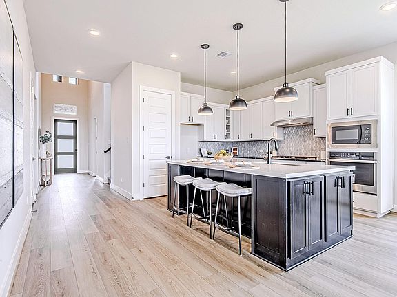 Stainless steel appliancesGranite countertopsQuartz countertopsOpen kitchenWood cabinetsExpansive great roomTile backsplash