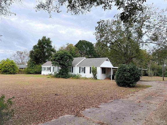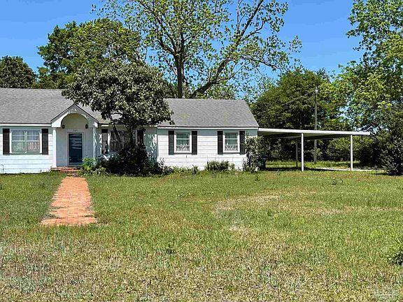 Looking for a home that provides the best of all worlds at an Awesome NEW PRICE? Then you'll love this spacious and well-maintained 3 bedroom, 2 bath home. Comfortably situated on nearly 2-acres in a highly regarded school district, this property offers a relaxed southern setting and close proximity to I-65 and Hwy 29. Have everything you need just minutes from town or within reasonable driving distance. The exterior of the house has charming curb appeal with a covered front entry to welcome guests. Inside this 1896 sqft residence, you will find a split floorplan perfect for entertaining. The traditional layout features a formal living room with a brick fireplace, a dining room with glass french doors, a kitchen recently updated with a dishwasher, built-in oven, and smooth-top stove, and a master suite with a dress area, cultured marble countertops, and walk-in closet. The warmth of well-kept wood floors enhances the bright and airy interior. A home office offers a great space to work from home or convert into another bedroom. A spacious sunroom is also perfect for relaxing in or converting into any living space that fits your needs. Enjoy meals in your formal dining room and gatherings under the open sky on the back patio. The shady yard is a well-manicured lawn landscaped with pecan, pear, lemon, and blueberry trees. Flomaton offers small-town living with the convenience of being 14 mins from Windcreek Casino/Spa/Hotel/RV Park, 14 mins from downtown shopping and Walmart supercenter, plus plenty of places to fish, camp or explore trails. Or take a scenic drive to the Emerald beaches of the Gulf Coast. This is a fantastic opportunity to make this your new home at a great price!