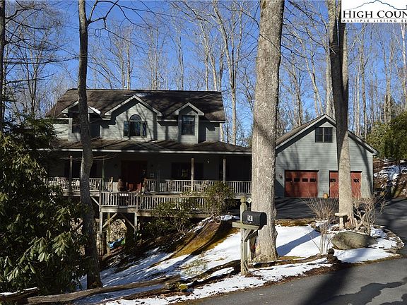 Stunning & spacious traditional farmhouse including 4 bedrooms & 4.5 bath in beautiful gated & desirable Twin Rivers neighborhood. Property offers private, quiet setting, beautiful winter mountain views, up-scale kitchen including SS appliances & granite, many upgrades. Open floor plan, master on main, tons of storage including storage in basement, & floored attic space over the 2nd floor & garage. Space over garage is insulated & could easily be finished off for extra space, including a private exit. Large finished basement with a full bath. Plenty of room for game room, exercise space, home theater, guest space and/or office. Twin Rivers community is a nature lovers’ retreat including private fishing on portions of Watauga River & Boone Fork creek & great hiking trails. Centrally located to all the High Country Attractions, shopping & restaurants & ski slopes. Furnishing are negotiable. Great for entertaining with large decking & large front covered porch. The 2 car garage is XL, there are dual furnaces, A/C units & water heaters. There is even a bocce court and fire pit, making this home great for a family & entertaining.