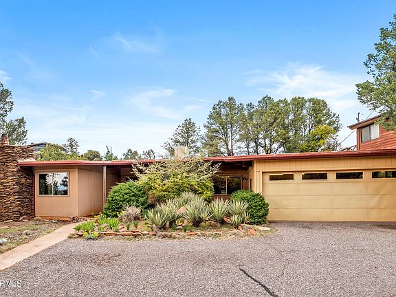Welcome to your dream home nestled in Sedona's quaint Oak Creek Knolls neighborhood, where short term rental are not allowed. This character- filled abode boasts walkability to Hillside and Tlaquepaque shops and restaurants, ensuring a vibrant lifestyle at your doorstep. Well crafted Mid-Century Modern home with built-in cabinetry and custom shelving, this residence exudes a vintage charm. Enjoy serene outdoor living with a deck on the south side, a rear patio, and lush trees enveloping the property. Admire the charm of a shale-stone wood-burning fireplace. Bask in natural light streaming through 3 sliding glass doors to the deck. This is a timeless Sedona retreat inspired by architect Howard Madole. You can make this home amazing!