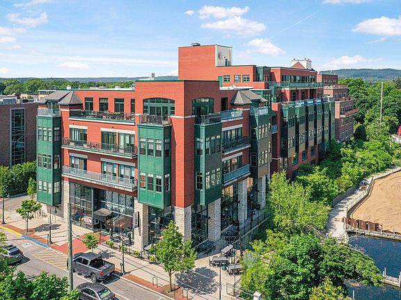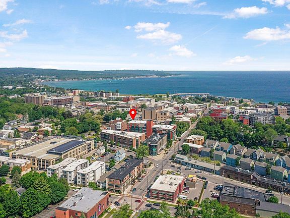 Take advantage of condo living at its best, plus a fantastic location in the heart of downtown Traverse City. This 3rd floor unit offers wonderful Boardman River and Downtown Traverse City views. Unit has an open floor plan with lots of windows for streaming natural lighting in, lovely master suite w/private bath and his & hers closets, other bedroom has walk-in closet and split bath access, gracious kitchen layout with eat at peninsula style bar, stainless appliances and washer and dryer access, spacious living area w/electric f/p and bay view windows. Enjoy waterside community patio area, secure underground parking with elevator to unit. Monthly association dues cover, Heat, Water/Sewer, Underground parking area with storage area, Trash, Maintenance of common interior/exterior areas.