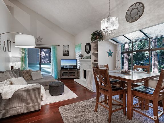 Welcome home to this beautiful top floor, corner unit condo in the forest of the Westboro community. Tucked away from the hustle & bustle of Federal Way, this 2 bedroom, 2 bath condo boasts soaring high ceilings, a working wood burning fireplace, gorgeous LVP floors, large picturesque windows, and more. Main floor bedroom has a walk-in closet & door out to the oversized deck w/ addt'l storage closet. The 2nd floor bedroom has 2 large closets, additional attic storage, ensuite bath & vaulted ceilings. There's ample storage throughout the unit. Condo comes with 2 parking spaces & an in-unit washer & dryer. HOA is very well managed w/ a 2 pet maximum & no rental cap! Don’t miss your chance to live in this great unit in a quaint community!