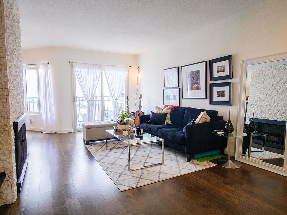 1 bedroom + den at the highly desirable Rob Clark off the famed Robertson Blvd and Beverly Hills adjacent! The open kitchen features caesar stone counters and stainless steel appliances, hardwood floors throughout, fireplace, walk-in closet, balcony, parking and brand new in-unit laundry. Den can easily be used as an office or guest area. Great natural light and 1 car parking. Building features a sparkling pool, sundeck, BBQ area and Gym. Fabulous Location!!
