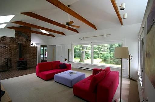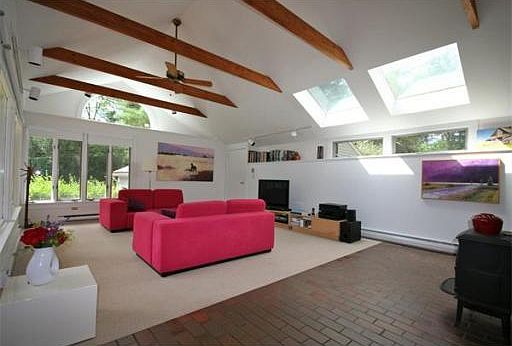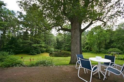 Very private home at end of long driveway, almost 4 acres surrounded by conservation land and trails . This lovely south facing property takes advantage of lovely vistas over spring fed skating pond. Renovated country kitchen with large fireplace, granite counter top, island with seating, new cabinetry, cathedral ceiling living with large picture windows and wood stove room, fireplace in dining room , first floor office and laundry. Artist studio with garage space below. 4 garage spaces.