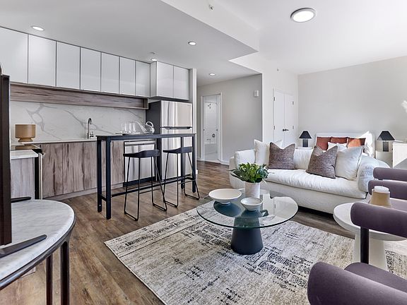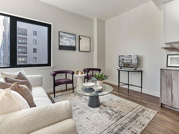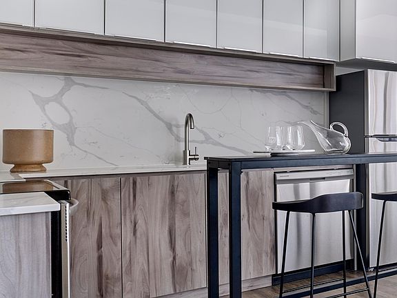 High-rise residenceExpansive windowsQuartz kitchen countertopsIn-unit washer and dryerSleek stainless steel appliancesPorcelain tile bathroom finishesOpen floor plans