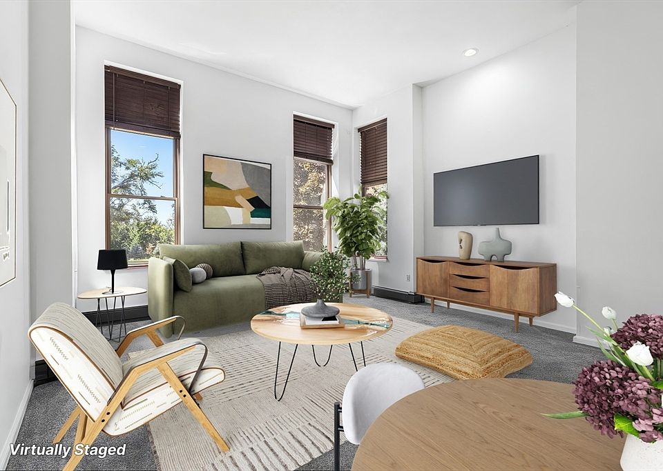 Well-appointed kitchenExposed brick accent wallShaker-style cabinetryGenerous closet spaceOversized windowsSoaring ceilings