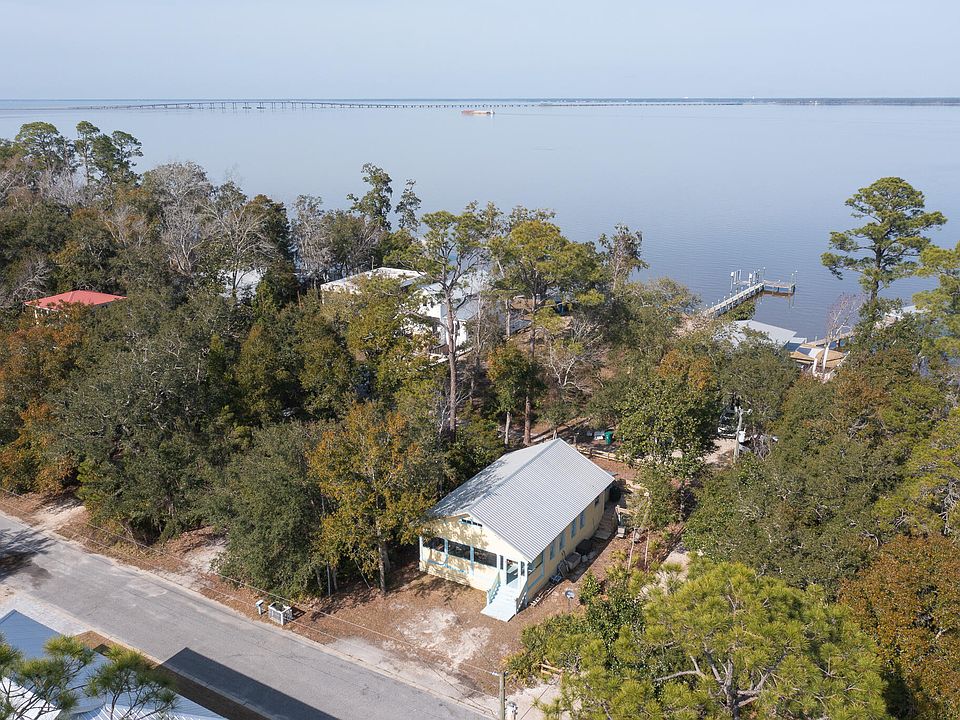 History, charm and character all play a big part in this 1248 sq. ft. Florida Cottage. Built in the 1930's with heart pine floors and pine ceilings, it's original home was behind the Governor's Mansion in Tallahassee. Moved to a bay view lot and renovated by Laurent Construction, it retains the ambiance and style of yesteryear with updated conveniences. Ten foot ceilings enhance the spacious 24' x 13' living and dining. Custom Pine cabinets and granite counters update the kitchen. There are two sunny bedrooms, 13x13 and 13x9.5, vintage style baths and two sleeping porches. The Sellers have installed a new fence establishing the boundaries of the property, a new roof was installed in 2019, the exterior was freshly painted in 2019, interior with fresh painted in 2024, new pedestal