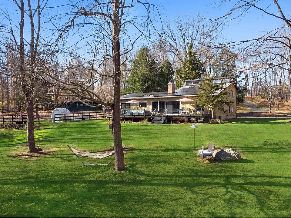 Welcome to "PONDVIEW" which is a wonderful 3,153 sq ft Country Contemporary that includes a 939 sq ft finished lower level. This home is sited on 5.49 private acres and has 3 bedrooms (lives like 4 bdrms) and 2 full baths. A large deck overlooks an expansive level backyard creating the ultimate park like setting with a pond, 3 Stall barn and paddock. The home features a new kitchen, new windows, new Solar Power system, and more! Upstairs there are 3 bedrooms and a full bathroom. The property allows for plenty of room to add a pool and tennis court and this home provides an ideal retreat for country living! Taxes do not include a Star Rebate of $1,689.78.
