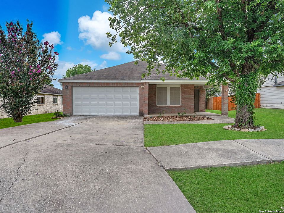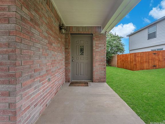 Welcome to 141 Stream Crossing - a beautifully maintained 3-bedroom, 2-bath home located in the highly sought-after SCUCISD, feeding into Steele High School! This charming home features tile and wood flooring throughout majority of the home, offering both durability and style. Enjoy cozy evenings by the fireplace in the spacious living room, perfect for relaxing or entertaining. Fresh interior and exterior paint give the home a bright, updated feel. The primary suite is a true retreat, complete with a tray ceiling, an oversized walk-in closet, and a luxurious en-suite bath featuring a double vanity, soaking tub, and a separate walk-in shower. Step outside to the covered patio and enjoy a serene backyard-ideal for morning coffee or unwinding at the end of the day. Conveniently located near local shops, restaurants, and entertainment, with easy access to major highways and just a short drive to Randolph AFB. This move-in-ready home has it all!