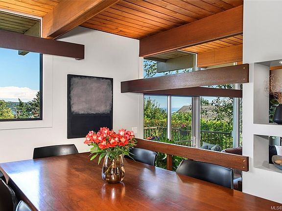 This is more than a home—it’s a lifestyle. A rare blend of vintage soul and modern ease, in a setting that both calms and inspires.Beautifully curated mid-century modern home with ocean views, clean lines, and a seamless indoor-outdoor flow. This 2,900 sq. ft. home features hardwood floors, post-and-beam design, a custom walnut + quartz kitchen, sunken living room with gas fireplace, and a 38-ft oceanview deck. Main floor includes 3 bedrooms, 2 baths, and laundry. Downstairs: family room, 2 more bedrooms, a den, and a full bath. Private yard with greenhouse, sheds, storage, and lane access. Upgrades: roof, heat pump, 200-amp panel, driveway, and Flexstone decking.
