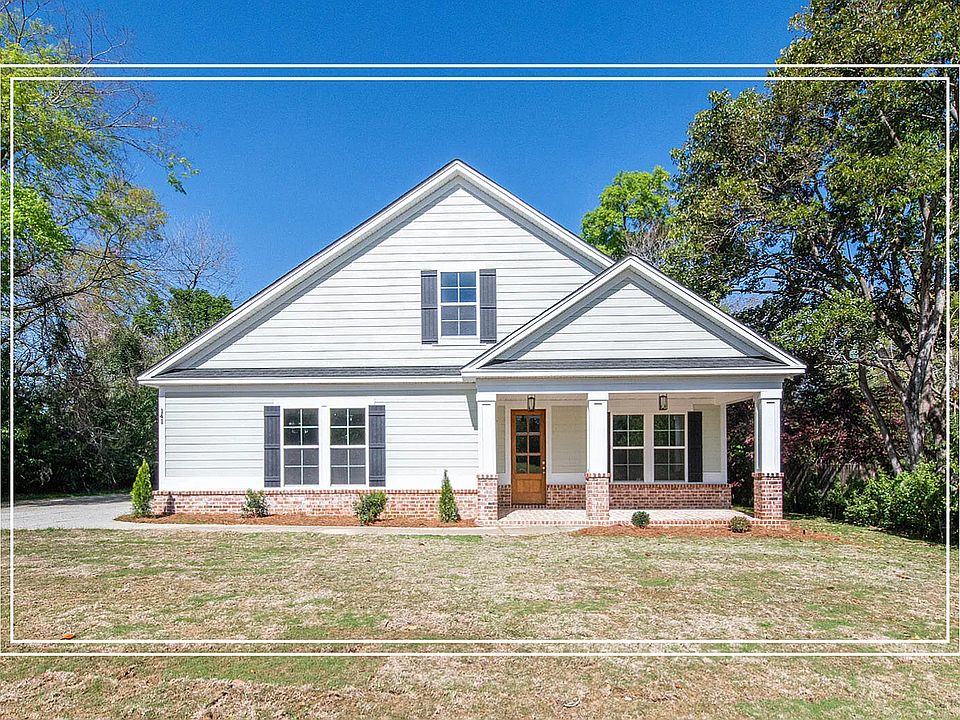 Brand-new home in the heart of Aiken, this 4-bedroom, 3-bath residence offers Southern charm with modern luxury and is just a short walk to the shops, dining, and attractions of downtown Laurens Street. Built in 2025, it features a rocking-chair front porch with herringbone brick, a welcoming foyer with domed ceiling, board-and-batten wainscoting, and durable LVP flooring. The chef's kitchen boasts a large island, granite counters, pantry, built-in shelving, gas stove with vent hood, undermount microwave, and tiled backsplash, opening to a vaulted family room with gas fireplace and French doors to a covered brick porch with wood-paneled ceiling. The main-level primary suite includes a double tray ceiling, his-and-hers walk-in closets, and a spa-like bath with dual vanities, granite counters, makeup area, rainfall shower, and freestanding tub. Two additional main-floor bedrooms share a full bath, while upstairs offers a flexible loft or guest suite with private bath and walk-in closet. Complete with a side-entry two-car garage, this home blends upscale finishes with unbeatable walkability.