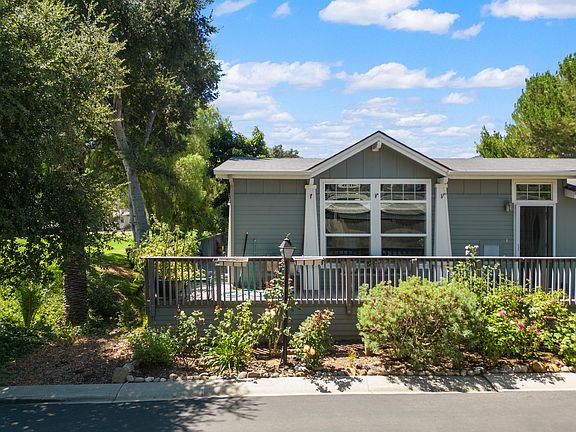 Rancho SY Estates at its best. A golfer's delight, home front porch is facing the first tee area. The home is a Silvercrest and the model is Westwood, built in 2007. Home has 2 bedrooms and 2 baths/ office. The main bath has an ample walk in stall shower and boasts of separate sinks. Large living room , high ceilings, warp around deck, separate dining area, kitchen has an island with an abundance of cupboard space, a gas stove top range and separate oven/ microwave. The space rent includes all of the park amenities, 9-hole executive pitch and putt golf course, Club House, Swimming pool, spa, gym, billiard room, bocce court and paths along Fjord plus water, sewer/ trash pick up at your home. This is SENIOR park and one has to be at least 55 years of age and the 2nd person 45 .