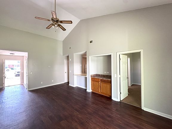 This spacious townhome is located in the Three Fountain Villas Neighborhood. Covered front porch. Large open living room with vaulted ceiling and a sliding glass door that opens onto the covered back patio. Built in storage in the living room. Open kitchen features plenty of cabinetry and countertop space. Master bedroom has carpet, ample closet space and private bathroom with tub/shower combo and built in vanity for maximum storage. Laundry room has built in storage and side by side connections. Central HVAC. Additional exterior storage unit. Backyard. Tenant is responsible for all utilities. No pets please. No smoking please. Available Now!
