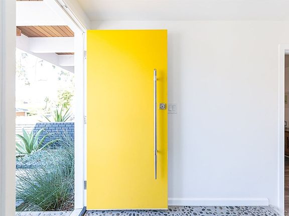 Come experience one of the few mid-century modern jewels in the coveted Lower Riviera! This thoughtfully remodeled 4 bed, 3 bath home with more than 2500 square feet was designed in 1957 by USC architecture students studying the famed architect Eichler. The open floorplan and floor-to-ceiling windows allow a feeling of living up in the trees. The open plan includes a living room, family room with modern tile fireplace, super chic kitchen with quartz-covered island and a den/office all flowing out to the entertainer's backyard. AIR CONDITIONING!! and central heat efficiently operated by NEST thermostats enabling you to turn the air or heat on/off with your phone. Wired for security. The backyard includes an Ipe deck, built-in fire pit and benches, a fantastic lounge area, decomposed granite area for bocce ball, and a huge tiered organic garden with nearly every veggie and fruit imaginable. All this and a desirable location, great schools and highly walk-able lifestyle close to El Retiro park/library, the Riviera Village, beaches and shopping!