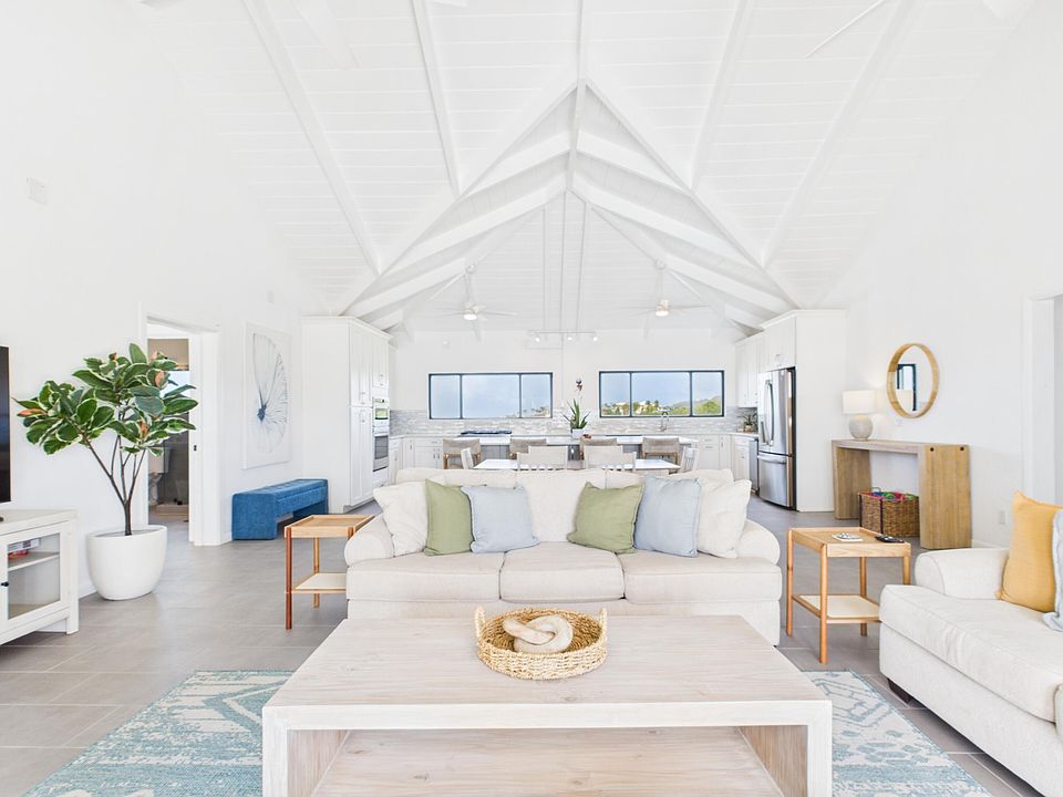 Upstairs, the main residence features three spacious bedrooms and three full bathrooms. The open living, dining, and kitchen area flows seamlessly, with modern finishes, ample natural light, and easy access to the outdoor patio spaceperfect for entertaining or relaxing in the Caribbean breeze. The home has been thoughtfully renovated with updated fixtures, finishes, and tile work throughout, blending classic island charm with contemporary comfort.