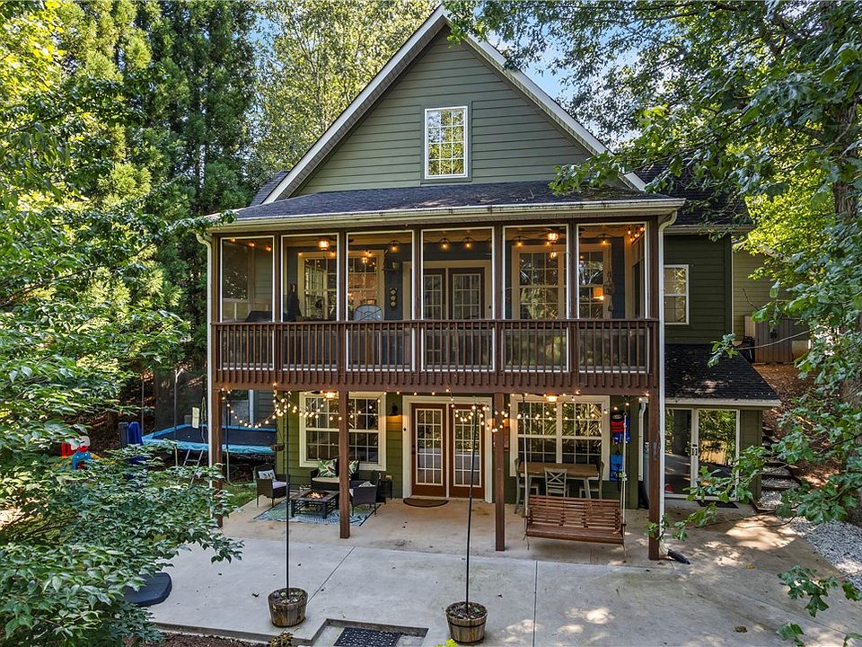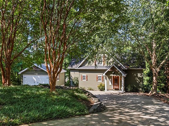 Welcome to your dreamy lakefront getaway! Nestled in a serene, low-traffic cove, this beautifully maintained 4-5-bedroom, 3-bath home offers the perfect blend of comfort, functionality, and year-round enjoyment. The heart of the home is a beautifully updated kitchen, thoughtfully designed for entertaining with ample counter space and modern finishes. Just off the spacious living room and dining room, you’ll find a versatile Eze Breeze back porch, perfect for savoring the outdoors in all seasons—whether you're enjoying morning coffee on a cool, crisp fall morning or hosting evening grill outs after long summer days on the lake. Also on the main level, you'll find the primary suite, a full bath and the laundry area. The top floor boasts of 1 more bedroom, a flex room that has previously been used as a 5th bedroom and another full bath. The lower level features a second living area/rec room, ideal for movie nights, game days, or guest overflow, and yet another full bathroom that connects 2 more bedrooms! Step outside to the lower patio with ample space for even more entertaining, where a naturally landscaped path leads to your private covered slip dock—complete with power, water, and a double wave runner lift. A golf cart path also provides easy access to the shoreline for all ages. The peaceful cove offers calm waters for swimming and paddling, and you're just a short kayak or paddleboard trip up two creeks to nearby hidden waterfalls, adding a touch of adventure to your lakeside lifestyle. Whether you're looking for a full-time residence or a vacation home, this home offers the space and setting to make every day feel like a getaway.
