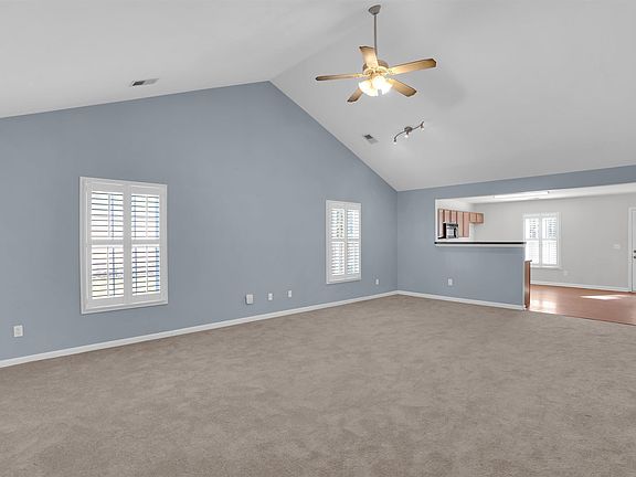 Public Open House this Saturday 11am to 1pm. 1.5 story home with 3 bedrooms and 2 bathrooms on the main level. Brand new carpet just installed in the great room, hallways, and all 3 bedrooms. Vaulted ceiling in the great room is open to the kitchen. Accented by plantation shutters. Primary bedroom is tucked off of the kitchen for privacy, with walk in closet and private bathroom. The second and third bedroom are off of the great room with ceiling fans in each bedroom. Upstairs features another bedroom or it could be a Bonus room for flex space or office or game room. The backyard is fully fenced with privacy fence and it backs up to the woods for more privacy. Enjoy your cookouts and entertain guest. HVAC installed 2019. Disclaimer: CMLS has not reviewed and, therefore, does not endorse vendors who may appear in listings.