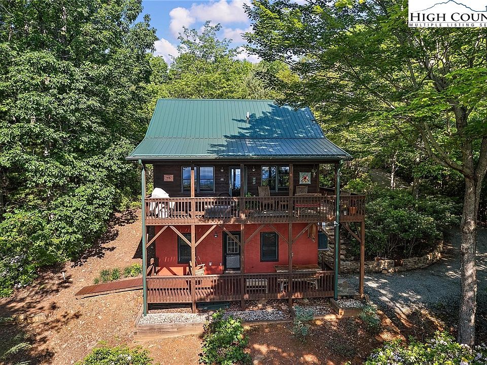 Escape it all in the privacy of your welcoming retreat just minutes from the Blowing Rock, Boone, and the Blue Ridge Parkway with easy access to hiking, skiing, mountain biking, fly-fishing, restaurants, shopping, and all the High Country has to offer. Wake up to an awe-inspiring long-range view, surrounded by over 4 acres of lush woods, and breathe in the crisp mountain air. This home would make a fabulous short-term/vacation rental, primary residence, or second home getaway. This cozy cabin has it all - a mountaintop well yielding the best water you’ve ever tasted, Three floors, three full baths, two bedrooms, and an office/ den, perfect for working from home or entertaining. The finished walk-out basement includes a kitchenette and extra working/entertaining and sleeping space. There are almost 1,000 sq ft of decks for relaxing with the breathtaking view, including a wrap-around covered deck on the main level and a second large deck below. Outbuildings include a heated Tiny House with a loft bedroom, kitchenette, half bath, and water…perfect office, craft, or extra sleeping space. The property also includes an insulated, heated barn/garage with running water and oversized doors on each end; previous owners had horses. The reinforced concrete floor in the barn is perfect for parking your toys, a great spot for ping pong or archery; a stone fire pit sits nearby. This home is great for hosting guests as each floor can be closed off so that all can have their own space to sleep and relax and plenty of inside and outside space to gather together. All this, and only 90 minutes from Charlotte, and an extra unimproved lot! Owners use a PO Box in town, but neighborhood mail delivery is available through Lenoir. The last section of Sampson Rd, less than one mile, is in the process of being paved.