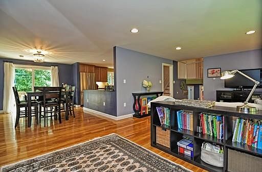 Hello new home! Tucked away from the street is this renovated and updated 4 bedroom, 2.5 bath home ready for you! Step inside the tiled foyer to custom built in's, laundry room, a fabulous family room w/half bath, a beehive fireplace and direct access to the garage. Upstairs you'll discover beautiful hardwood floors, a lovely fireside living room and recently updated eat-in kitchen and adjacent dining room. The newly built over sized deck is right off the slider. The kitchen features stainless appliances, black granite counters with a breakfast bar. The bedrooms have all been painted and feature custom lighting and more hardwood floors. All the baths have been renovated and the windows, roof, heating/HVAC systems have been updated. The exterior has just been painted. Outside is over an acre of professionally maintained lawns, stone walls and open grassy area to enjoy. Plenty of parking and even room to expand this home. Don't delay in seeing this gem!