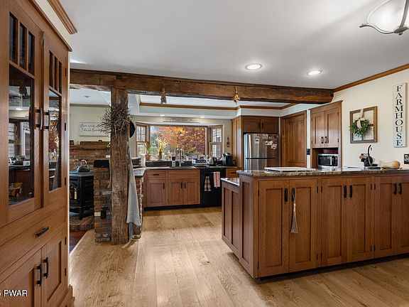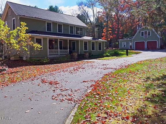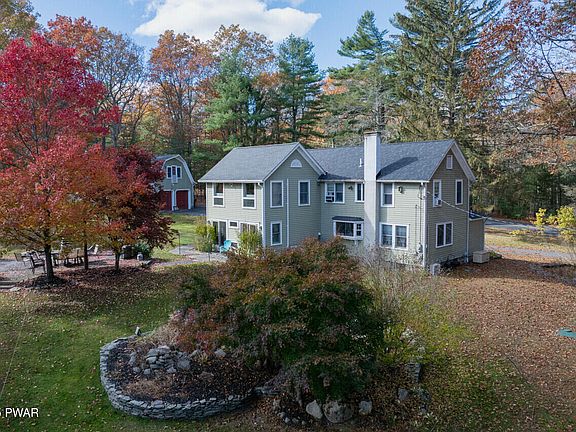 On over 4 acres with NO HOA, this modern farmhouse is not just a home, it's quite literally a retreat. Ideal for someone seeking an elegant yet comfortable home where there is ample space both indoors and out. Arriving at the home, you will notice the outside of the house features a wrap-around driveway with ample places to park and a detached garage. A gated inground saltwater pool with a pool house, Koi pond, chicken coop, multiple out buildings for storage or even horses if you like. This property is designed very thoughtfully to maximize outdoor living. Upon entering the home through the mudroom, you will have access to an additional room with access to a partially finished basement or you can go in straight to the kitchen with features such as stainless steel appliances, exposed wood and brick for aesthetic charm that you don't see much of. The main living room boasts high ceilings with wood beams, and a stone wood burning fireplace that you are sure to enjoy on the cool nights. Through the dining room you will pass a full bathroom and head upstairs to find three bedrooms and two full baths. The grand primary bedroom has beautiful windows that allow you to appreciate the setting you are in with a large bathroom and walk-in closet with an additional closet for plenty of storage. Head back outside to your detached garage and find a two car garage. You will immediately appreciate this additional heated living space. The area downstairs is currently used as an art studio but would also make a great office. Upstairs you will find another full bathroom and another full additional living area for guests, or inlaws. Another detailed and well thought out space for this home. There is also an entrance/exit at the rear of the garage along with more outside storage.This home is truly a must see!!