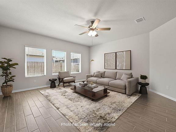 Welcome to 141 Yellowstone Drive—a like-new, single-story home built in 2023, offering 3 bedrooms, 2 bathrooms, and 1,772 square feet of thoughtfully designed living space. This home features wood-look tile flooring throughout the common areas and an open-concept layout perfect for everyday living and entertaining. The kitchen includes granite countertops, light cabinetry, stainless steel appliances, recessed lighting, and a large pantry. The spacious primary suite offers double vanities, an oversized soaking tub, a separate walk-in shower, a generous walk-in closet, and plenty of additional storage. Outside, you’ll find a 2.5-car garage (plumbed for a water softener and has additional rack storage space), an automatic sprinkler system, and a fenced backyard. Located in the Paramount neighborhood of Kyle, this home is ideally situated between Austin and San Marcos with quick access to I-35. The house has been freshly painted and is ready for new owners!