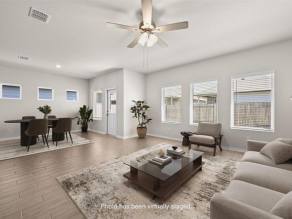 Buyers who close with our preferred lender, Park 65 Lending, will receive $2,500 of lender-paid closing costs! Welcome to 141 Yellowstone Drive—a like-new, single-story home built in 2023, offering 3 bedrooms, 2 bathrooms, and 1,772 square feet of thoughtfully designed living space. This home features wood-look tile flooring throughout the common areas and an open-concept layout perfect for everyday living and entertaining. The kitchen includes granite countertops, light cabinetry, stainless steel appliances, recessed lighting, and a large pantry. The spacious primary suite offers double vanities, an oversized soaking tub, a separate walk-in shower, a generous walk-in closet, and plenty of additional storage. Outside, you’ll find a 2.5-car garage (plumbed for a water softener and has additional rack storage space), an automatic sprinkler system, and a fenced backyard. Located in the Paramount neighborhood of Kyle, this home is ideally situated between Austin and San Marcos with quick access to I-35. The house has been freshly painted and is ready for new owners!