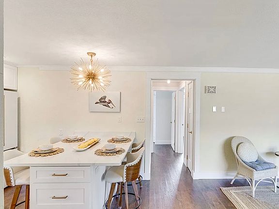 This completely renovated unfurnished (living room rug, counter stools, and entertainment unit can stay) 2-bedroom, 1-bathroom first-floor end unit condo offers modern living in a prime walkable location just minutes from the beach, restaurants, and local stores. This beautiful home features high-end finishes throughout, including crown and baseboard molding, and a stunning tiled, walk-in shower with glass doors. Heated flooring throughout unit including bathroom floor for toasty toes in the winter! Enjoy cooking in the modern kitchen equipped with newer GE Cafe appliances, custom cabinets, & Quartz countertops. Includes convenient in-unit washer & dryer. Wider more accessible doorways, walkways and bathroom. Parking space close to condo. Thoughtful upgrades and contemporary touches make this home move-in ready and perfect for coastal living!