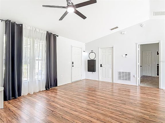 Enjoy comfort, savings, and sustainability in this move-in-ready 3-bedroom, 2-bath home designed for low-cost living. With a 2022 roof, solar panels, private well, and septic system, you’ll love having minimal monthly expenses - no water bill and dramatically reduced energy costs. Inside, the open, split-bedroom layout offers a bright and airy living space filled with natural light. The kitchen connects seamlessly to the dining and living areas, while the private primary suite provides a quiet retreat. Step through sliding glass doors to a covered back porch and fully fenced yard, perfect for entertaining, pets, or gardening. Set in a peaceful neighborhood near Blue Spring State Park, shopping, and quick I-4 access, this home delivers the best of affordable, sustainable Central Florida living.