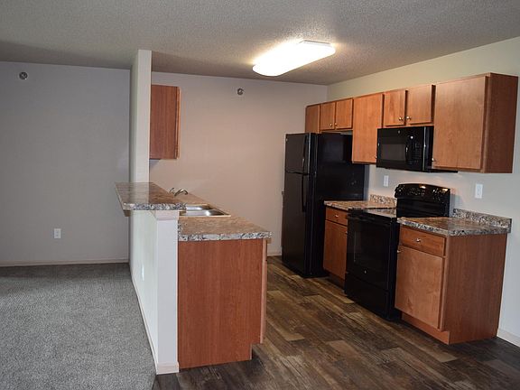 Awesome newer building with everything you need! 2 bedrooms on walk out level, 2nd floor or 3rd floor vaulted Some kitchens have open kitchen with breakfast bar into living area Some kitchens are L shaped with wide open living areas! Split floor plan with bed and bath on both sides of living area. 2 HUGE bathrooms Black kitchen appliances with smooth top range Microwave, dishwasher, disposal Full size washer in dryer provided in apt Heat, hot water, WSG included. Renter pays electric throught Xcel Energy. No pets.