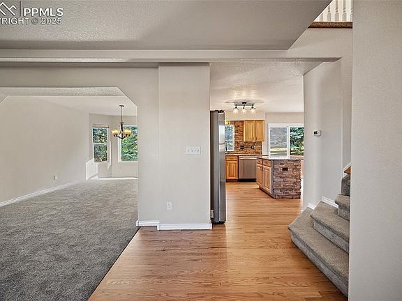 Welcome to this inviting home in the popular Trail Ridge community. Thoughtfully designed for everyday living, this residence offers a bright and open layout, a finished basement with extra amenities, and outdoor spaces perfect for both relaxation and entertaining. A spacious covered front porch provides a warm welcome and the perfect spot to enjoy colorful Colorado evenings. Inside, natural light enhances the open floor plan where the living room flows seamlessly into the dining area and kitchen. The main level offers a comfortable and functional space for gatherings with tall ceilings and large windows that create an airy and welcoming feel. Upstairs, the primary suite is a private retreat with views of Pikes Peak from both the bedroom and the front of the home. The en-suite bath includes dual vanities, a soaking tub, a walk-in shower, and a generous walk-in closet. The finished basement extends the home’s living space and includes a full-size refrigerator and a stove top/oven. This versatile area is ideal for entertaining, hosting guests, or creating a separate living space. Outdoors, the elevated redwood deck overlooks a private backyard framed by mature trees and professional landscaping. It provides a peaceful setting for dining, play, or simply enjoying nature. Living in Trail Ridge means having access to some of the best that northern Colorado Springs has to offer. From award-winning District 20 schools to nearby destinations such as the Air Force Academy, Flying Horse, Ford Amphitheater, and some of the city’s finest dining and shopping, the location combines convenience with lifestyle. Schedule your private showing today and experience everything this Trail Ridge home has to offer.